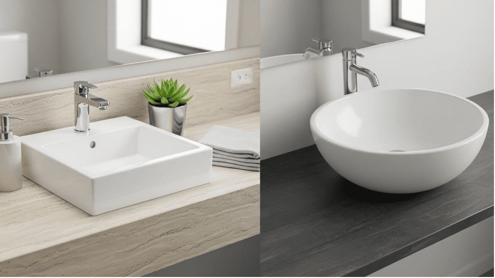 Material affects durability and maintenance. Ceramic is easy to clean, stone adds texture, metal feels contemporary, and composite materials provide stain resistance. Matte finishes hide water spots, while glossy surfaces reflect light and brighten the area.